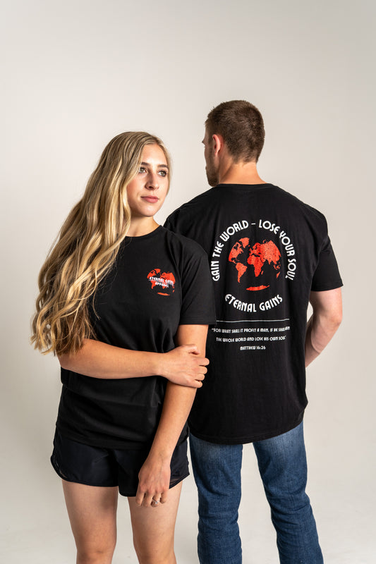 At Eternal Gains, we're not just creating apparel - we're building an empire of individuals who want to glorify God and enjoy him forever. We're building a message - one that points beyond the temporary wins of this world and towards something far greater than ourselves.